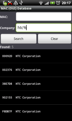 - To download the application you’ll need to go to the Android Market and search for “MAC (OUI) Database”.