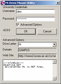 This application will attempt to mount your University of Essex M: Drive on your PC.